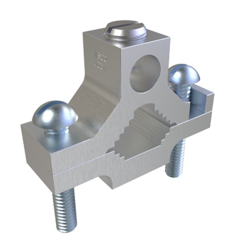 Permaground Aluminum Ground Clamp, Dual Rated, Conductor Range 1/0-14, Pipe Sizes 1/2 to 1in, Rebar Sizes #4-#6, UL
