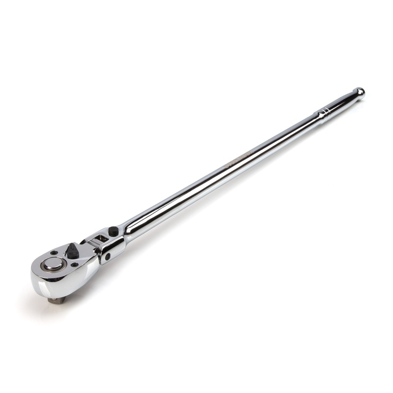 Even the toughest of jobs are no match for the STEELMAN 60575 1/2-Inch Drive 72-Tooth 180-Degree Flex-Head Reversible Quick-Release Ratchet. Constructed with a heavy-duty chrome vanadium steel handle and head, this 72-tooth ratchet is built to withstand the harshest of working environments. The extra-long, 24-inch handle gives you additional leverage on stubborn, rusty, or seized fasteners. Just below the flex head itself is a locking button that can be used to adjust the angle of the head to allow access to fasteners at almost any angle, locking securely into place when the button is released. The back of the ratcheting head has a convenient quick-release button that allows you to swap out sockets easily, and with a 5-degree ratchet arc you can easily engage fasteners even in tight spaces. The full polish handle resists rust and corrosion and is easy to wipe clean when covered in oil, dirt, or grime. Designed to meet or exceed 150% of ASME and ANSI torque requirement standards for hand tools, this ratchet is a top choice for anybody in the automotive, construction or equipment maintenance industry!