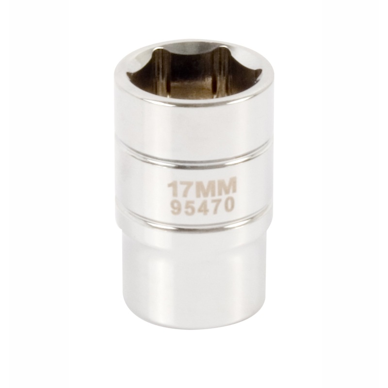 If you need a socket you can depend on, be sure to find a home in your tool box for the STEELMAN PRO 95470 1/2-Inch Drive x 17mm 6-Point Metric Socket. Constructed of heavy-duty heat-treated chrome vanadium steel, this shallow access socket has the strengt