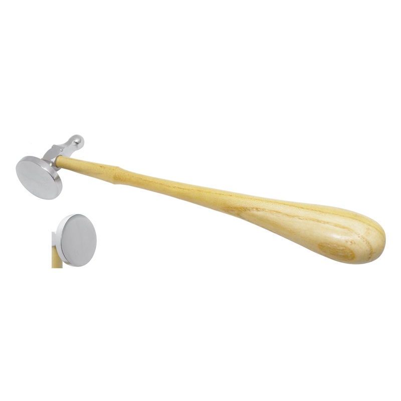 This 11″ long German-style chasing hammer is designed with a 1-3/4″ in diameter polished steel flat, smooth face for forming, flattening, and shaping metals. Features a ballpein head on the opposite side for riveting purposes. Securely mounted onto a hardwood handle.