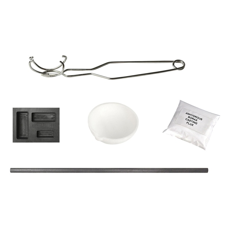 This kit is ideal for torch melting methods for silver. Includes the following products: a 4 ounce package of anhydrous casting flux (ideal for drawing out impurities in metals and keeping them at a more liquified state, therefore resulting in better and consistent pours); a pair of small whip tongs which will accommodate the included 100 gram ceramic crucible dish. This set also comes with a 5/16″ x 12″ graphite stir rod, as well as a 3-cavity graphite combo ingot mold with three capacities/sizes for casting silver (1/4, 1/2, and 1 T. oz).