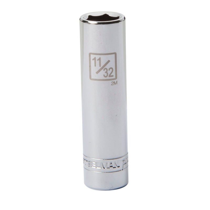 If you need a socket you can depend on, be sure to find a home in your toolbox for the STEELMAN PRO 78405 1/4-Inch Drive x 11/32-Inch Deep Well 6-Point SAE Socket. Constructed of heavy-duty heat-treated chrome vanadium steel, this socket has the strength r