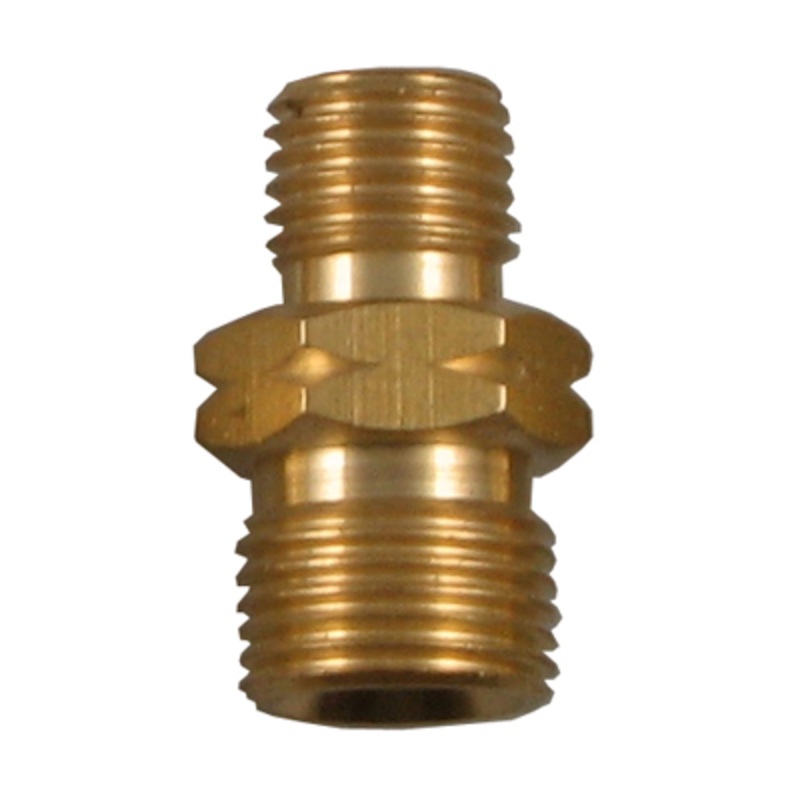 A brassunion with a 3/8″ BSP fitting on one end and a 1/4″ BSP on the other with a left hand thread.