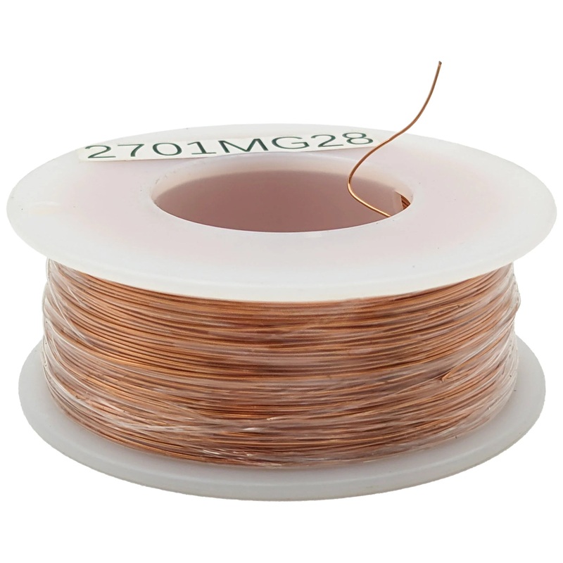 28 Gauge Magnet WireLength: Approximately 500 FeetCopper wire insulated with solderable Polyurethane and a Polymide overcoatUsed for making custom coils, transformersWeight: 1/4 Pound