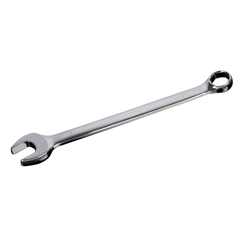 Work with the same quality tools as service technicians with the STEELMAN PRO 78361 1-Inch Full Polish SAE Combination Wrench with 6-Point Box End. Constructed of heat treated chrome vanadium steel alloy this tool is guaranteed to meet or exceed ASME and A