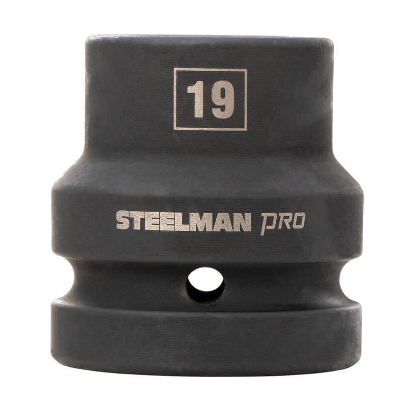 Every mechanic knows that having a reliable set of tools can make your life easier when working on heavy-duty vehicles and equipment. The STEELMAN PRO 60558 1-Inch Drive x 19mm 4-Point Square Budd Impact Socket is ideal for use servicing large trucks, tractor trailers, buses, and other vehicles that use Budd Wheels in addition to working on construction projects and industrial equipment that utilized 4-point fasteners. Made from thick and durable chromoly steel, this metric socket features a through hole and groove on the base to allow use of retaining rings and pins on the 1-inch drive end to hold it securely onto air wrenches, adapters, and extensions. The square, 4-point shape grips the sides of fasteners and not the corners, reducing wear and the chance of rounding the fastener and the deep well design allows easy reach of nuts on extended threads and recessed bolts. The socket features a rust and corrosion resistant black phosphate protective coating with laser etched size callouts and markings. Rated to withstand up to 150% of ASME torque requirements for impact tools, this socket can handle tough use in any professional shop / garage, home workshop, or on the work site.