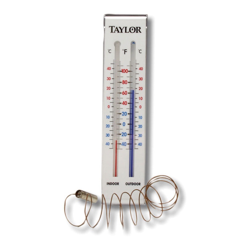 Get an accurate reading of the outdoor temperature from the comfort of your home! The 10 Inch Indoor and Outdoor Thermometer 5327 measures temperatures from -40 degrees F to 100 degrees F. Gives an accurate reading of indoor and outdoor temperatures at the same time; simply mount the thermometer indoors and extend the 45 foot long copper wire to a nearby window. Indoor and Outdoor readingRed: Indoor TemperatureBlue: Outside TemperatureBold Digits in Blue and Red