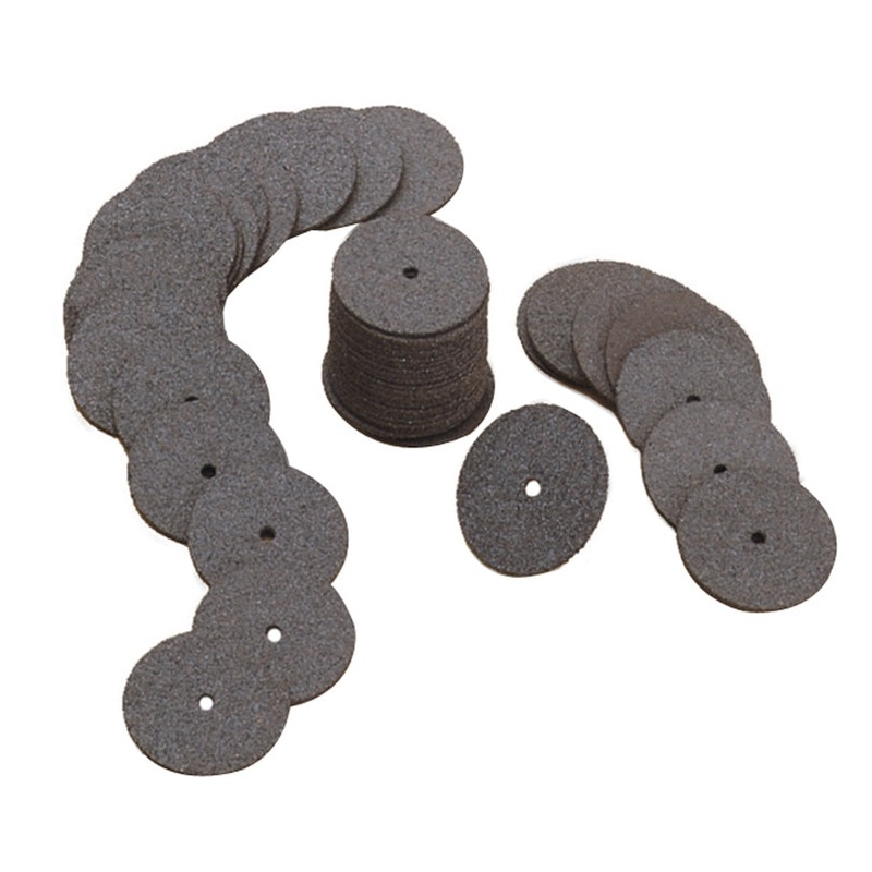 These thin grinding disks cut on the edge and on both sides. Excellent for cutting chrome casting and non-precious metal casting sprues. Designed with a pinhole for mandrel mounting. Includes 100 pieces. Measures 7/8″ in diameter x 0.20″ in thickness. Maximum RPM is 30,000. Use eye protection with side shields. Please read safety information on box label before using.