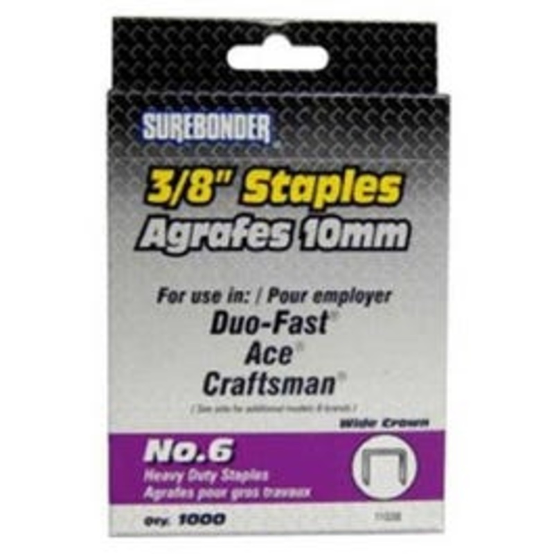 Surebonder, #6 Heavy Duty 3/8" Staple, 1000 Staples Per Box, For Use With Ace Models 22084, 22087 & 27175; Black & Decker Models 9700, 9701, 9713 &9715; Craftsman Models 6846, 6843, 68423, 68643, 6844, 68447, 68477 & 68471; Duo-Fast Models Ct850, Ct859, Xe