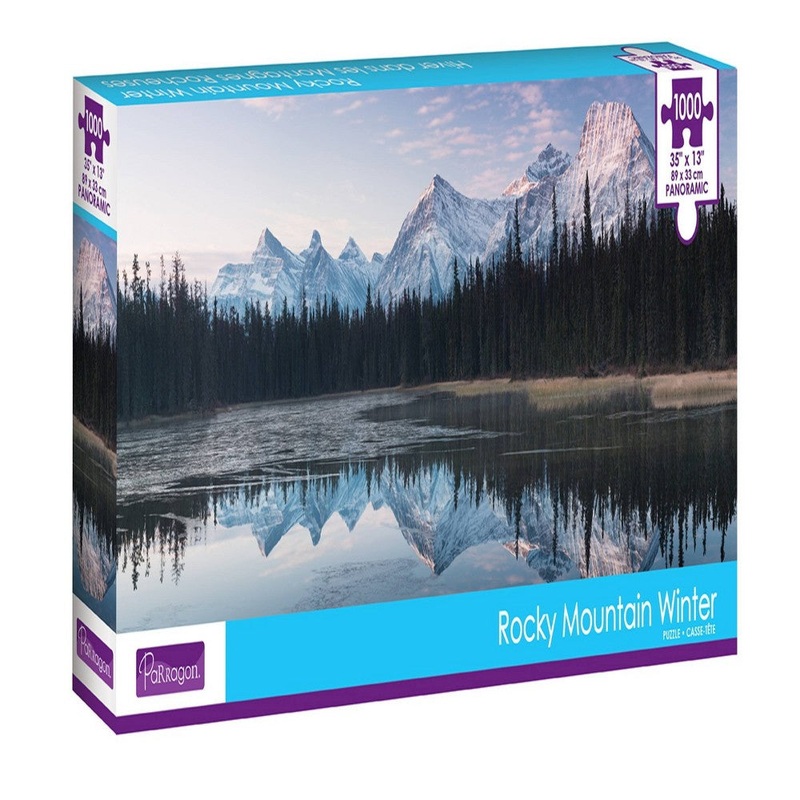 Take some time to relax as you piece together this majestic 1000-Piece Rocky Mountain Winter Panoramic Puzzle. This puzzle features scenic photography of wintery snow-capped mountains, a scene that sparks a sense of awe and challenges the mind.1000 piecesD