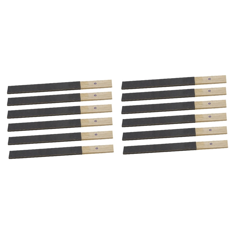 For sanding precious metals, use this grit 0 emery paper glued onto wood handles. Each stick is 11" long x 3/4" wide. Grits range from #4/0 (finest) to #4 (coarsest); other different grits are available for sale separately.