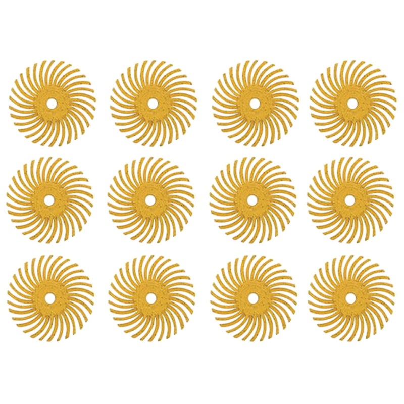 12 Pack 3/4" Yellow 80 Grit 3M Micron Radial Disc SetWith their highly flexible and conformable bristles, these 3M discs can be used for a wide variety of cleaning and finishing needs. They can get into small grooves and fine details with ease and can be u
