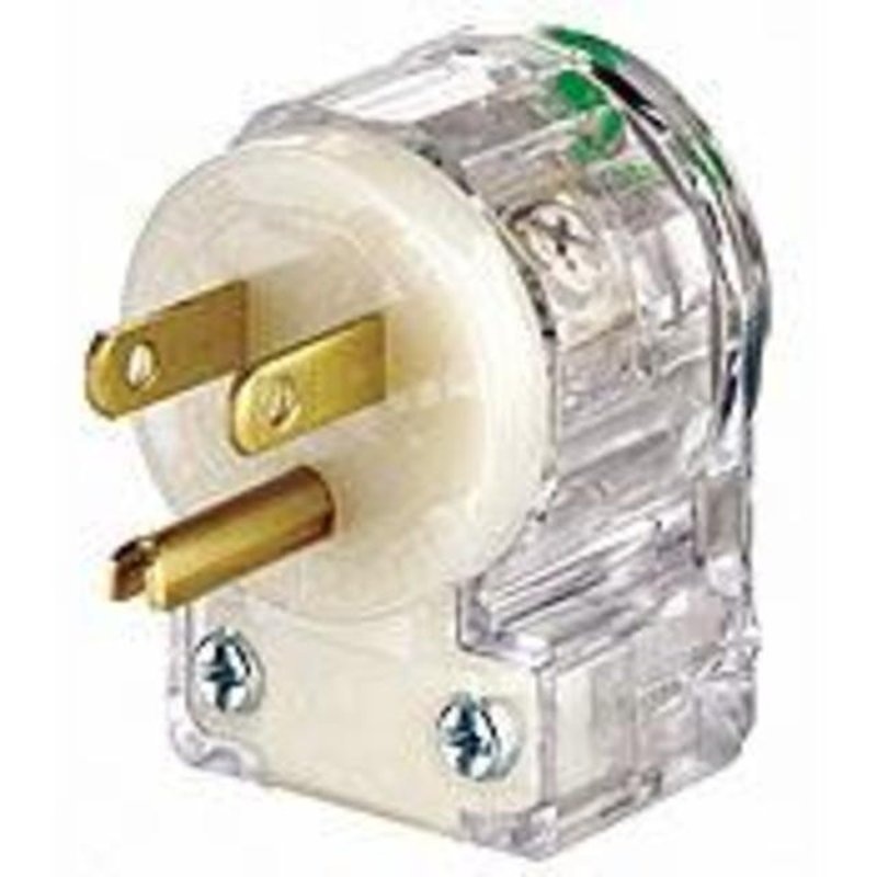 15 Amp, 125 Volt, NEMA 5-15P, 2P, 3W, Plug, Straight Blade, Hospital Grade, Grounding, Angle - Transparent.NEMA Configuration: 5-15PType: GroundingColor: ClearVolts AC: 120Amps: 15Type: PlugType: Hospital Grade
