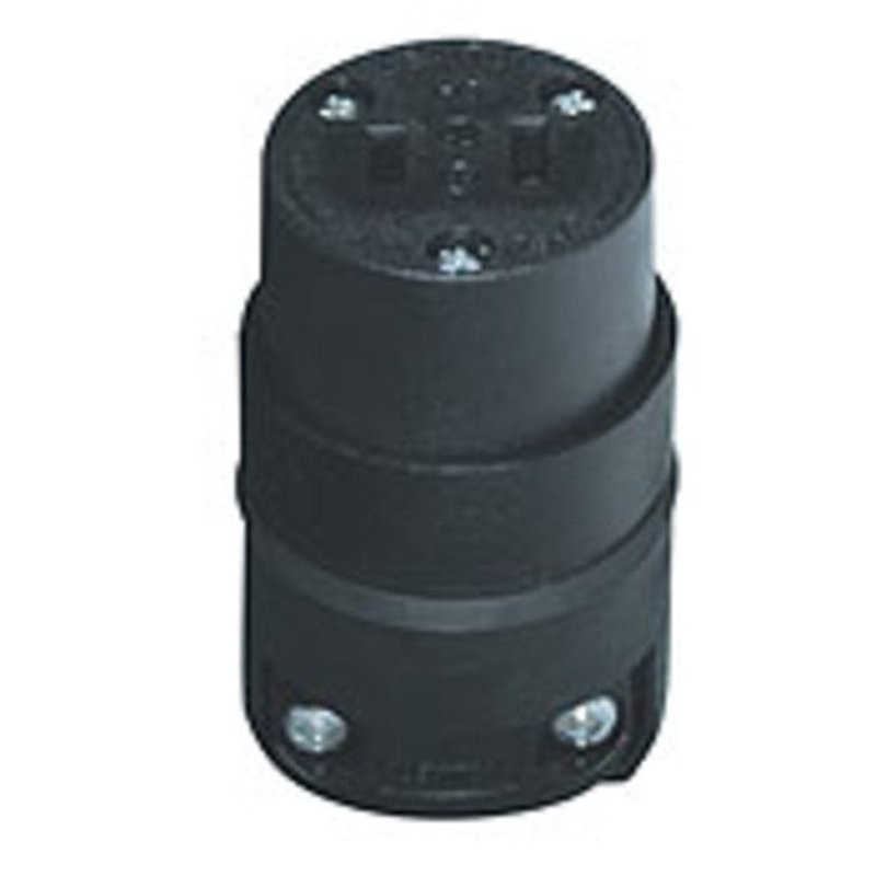 15 Amp-125 Volt; NEMA 1-15R. 2 Pole-2 Wire Connector,round Dead Front, Polarized, Black Rubber W/ Vinyl Insert, Face And ClampsType: Heavy DutyVolts AC: 120Type: ConnectorColor: BlackAmps: 15Material: RubberType: ConnectorNEMA Configuration: 1-15P