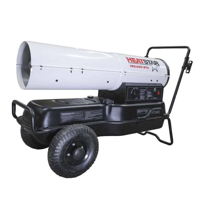 Whether you are using it in a garage or on the jobsite, this 175,000 BTU Forced Air Kerosene heater by HeatStar is up for the task. With jobsite ready dual powder coated tubular steel handles, pneumatic rubber tires, and a split upper shell designed for ma