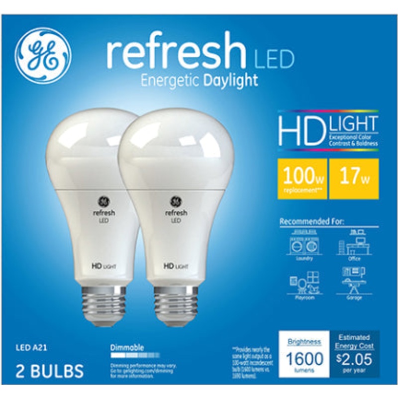 Daylight GE LEDs offer outstanding energy efficiency, long-lasting performance and just-right brightness, all in one package. Theyre dimmable and illuminate your home with a bluish-white light that creates a cool appearance. Use this GE LED general purpose