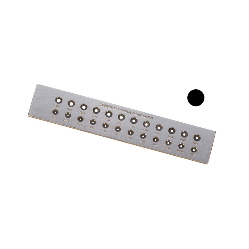24 Hole Tungsten Carbide Drawplate Tungsten carbide inserts are permanently fixed in marked steel plates. The angle of reduction is made to exact specifications for the smoothest possible pull, features 24 hole sizes ranging from 6.0 mm to 2.3 mm.