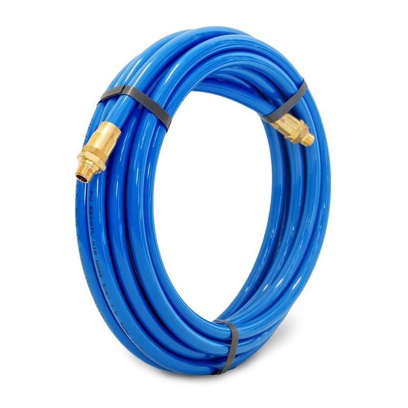 Get power to your pneumatic tools anywhere in your garage or workshop with the STEELMAN 50049-IND 25-Foot 3/8-Inch ID Air Hose with Reuseable 1/4-Inch NPT Brass Fittings. This straight, uncoiled hose is made from premium abrasion resistant polyurethane tha