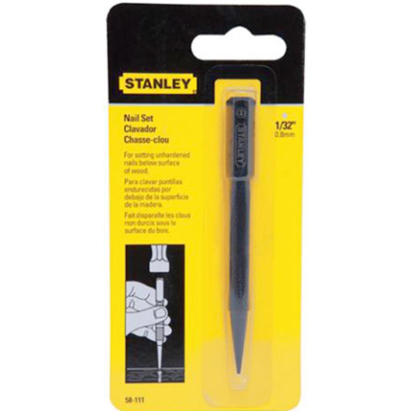Made of hardened and tempered alloy steel. Tips are cupped and chamfered. Square head, round knurled body. Black finish. Length 4″. Carded.