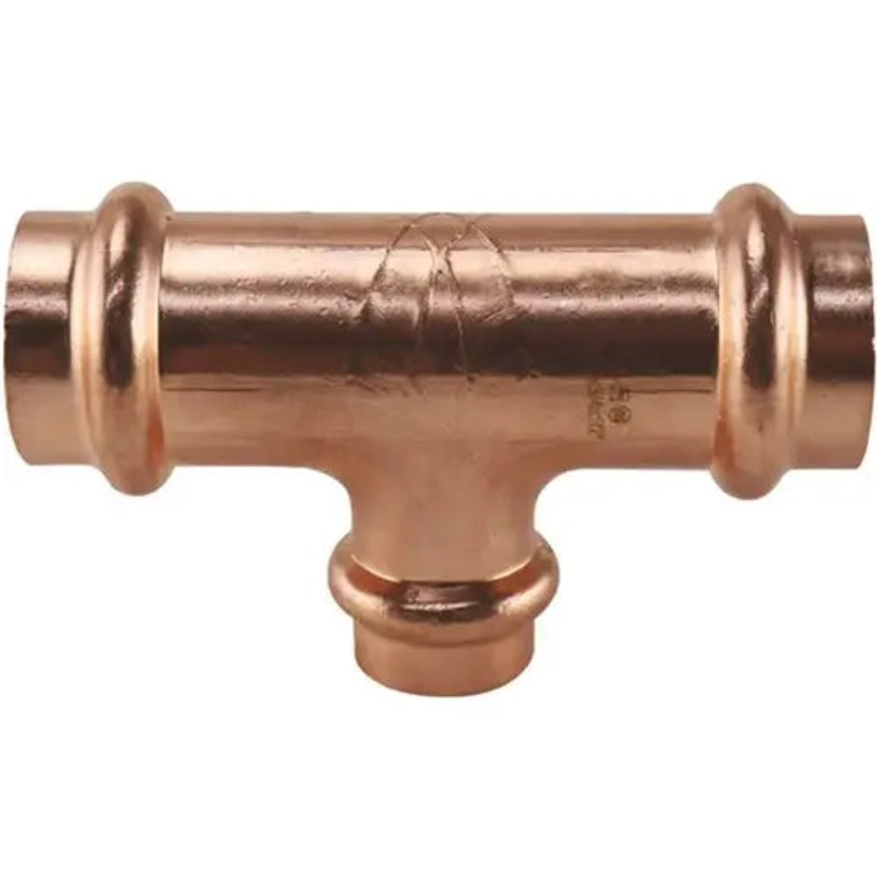 The 3/4 in. x 3/4 in. x 1/2 in. Copper Press Reducing Tee copper press fitting is NSF Listed, lead free and features a robust EPDM O-ring to ensure a clean leak free seal. Copper press fittings are designed for mechanical connection to ASTM B88-Type K, L and M copper tubing in hard drawn condition. Utilizing a hydraulic press tool, a watertight seal can be made in seconds without no flame, solder or flux. Each press fitting comes standard with leak before press technology to easily identify a fitting that has not been pressed. Connections can be made in wet or dry conditions reducing project downtime. These fittings are available in sizes from 1/2 in. to 1 in. and are compatible with all major hydraulic press tools.