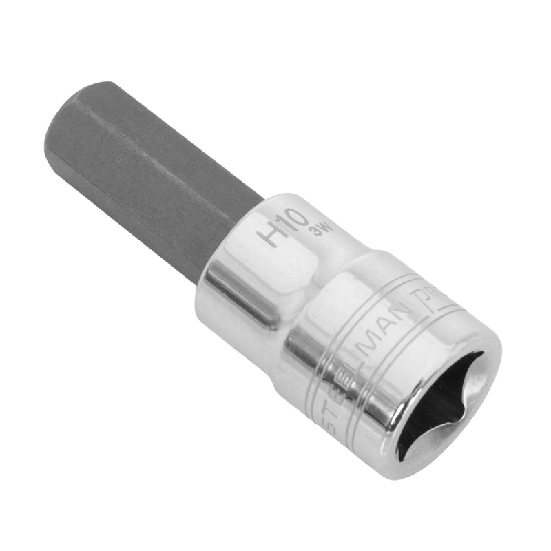 Don't struggle with a hex key to get the job done, do it in a fraction of the time using your favorite 3/8-inch drive ratchet or an electric drill / impact driver and a STEELMAN PRO 78388 3/8-Inch Drive x 10mm Metric Hex Bit socket. With a hex bit machined