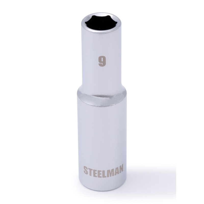 If you need a socket you can depend on, be sure to find a home in your tool box for the STEELMAN 78226 3/8-Inch Drive x 9mm Deep Well 6-Point Metric Socket. Constructed of heavy-duty heat-treated chrome vanadium steel, this socket has the strength required