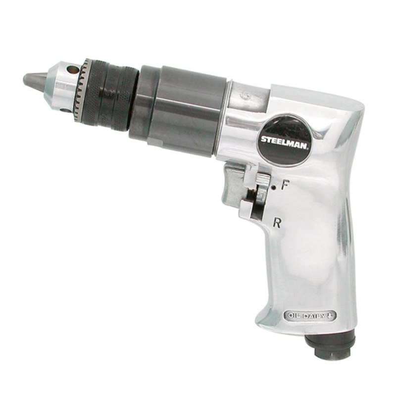 The STEELMAN 3/8-Inch Reversible Air drill is perfect for drilling, honing, reaming, and fastening. A thumb operated switch lets you easily reverse direction without removing your hand from the tool. A built-in muffler helps reduce operating noise and inte