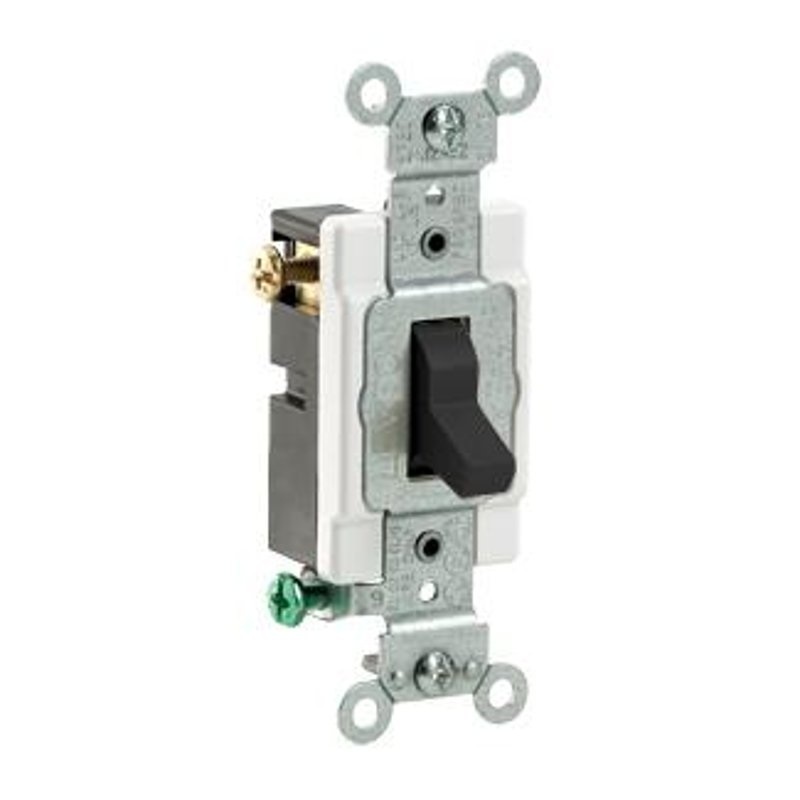 20 Amp, 120/277 Volt, Toggle 3-Way AC Quiet Switch, Commercial Grade, Grounding, Side Wired - BlackType: Side WiredType: 3-WayType: GroundingType: Commercial GradeVolts AC: 120Volts AC: 277Color: BlackType: Grounding ClipAmps: 20Material: Thermoplastic
