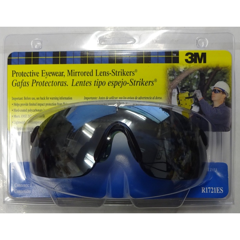 3M R1721ES Protective Eyewear Mirrored Lens StrikersThey can be used in any setting in which eye protection is required both indoors and outdoors.Shaped to fit facial contours. Meet the requirements of ANSI Z87.1Hard coated polycarbonate lens offers 99% UV