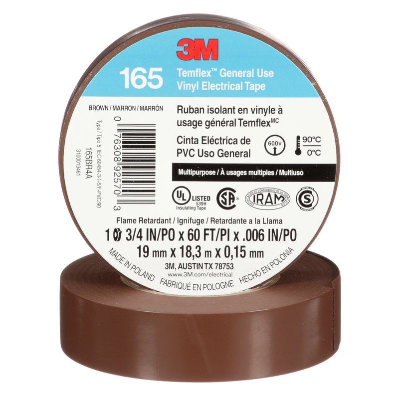 The 3M Temflex Vinyl Electrical Tape is a good quality, multi-purpose vinyl insulating tape. This tape has great resistance to moisture and varying weather conditions.Itis a polyvinyl chloride (PVC) tape that is flame-retardant and conformable. This tape provides great mechanical protection with minimum bulk. The 3M Temflex Vinyl Electrical Tape is a UL Listed and CSA Certified Insulating Tape.