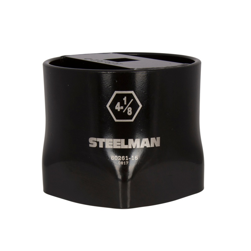 Here to help take the strain out of the arduous task of removing and installing wheel bearing nuts and other large industrial bolts and fasteners is the STEELMAN 60261-15 4-1/8-Inch 6-Point Locknut Socket. Designed in 6-point style, this heavy-duty socket grips the sides of fasteners instead of the corners to reduce the chance of premature fastener wear and rounding. Made of high strength carbon steel for long lasting durability, this tool has an industrial strength black powder coat that won’t easily chip off or fade. Strong and resilient, this socket is constructed to be able to withstand and deliver up to 400 ft-lb of torque to sockets without deforming. Easy to read size callouts and markings are laser etched into the steel and won’t rub off. Socket works with any hand operated 3/4-inch drive ratchet, extension, adapter, or torque wrench. This tool is not intended for use with power or impact wrenches / tools, so MANUAL use only.
