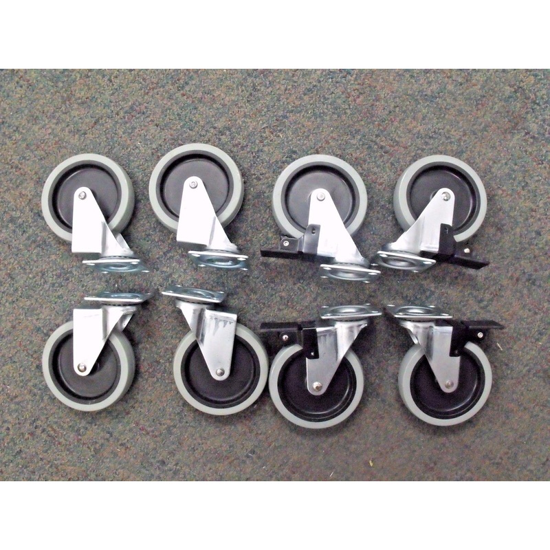 Includes 4 non-swiveling locking casters and 4 non-locking swivel casters