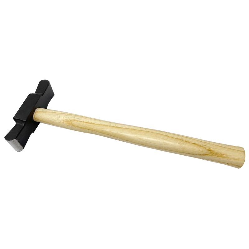With two large rectangular faces, the raising hammer is used to create a seamless form without thinning the metal. Head length measures: 4-5/8". Widths: 1-1/8" and 1-1/4".