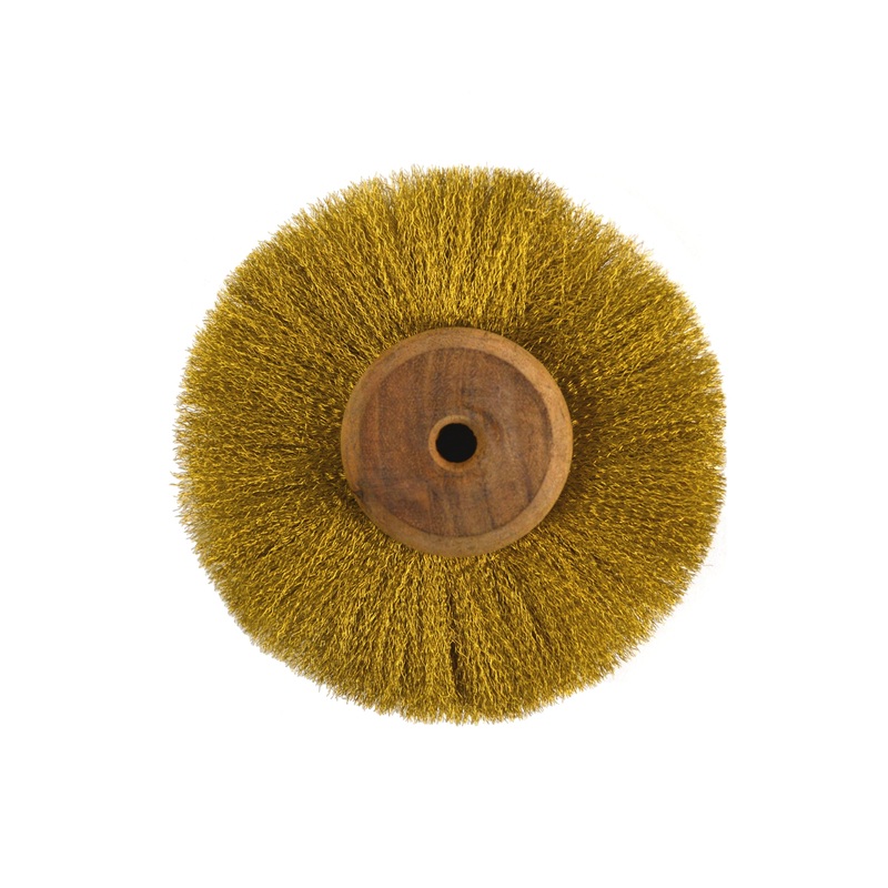 Measuring at 4″ in diameter, this crimped brass brush is the ideal tool for cleaning, deburring, and surface finishing. Conveniently mount the brush onto a tapered mandrel to a softer, satin, or matte finish on your materials.