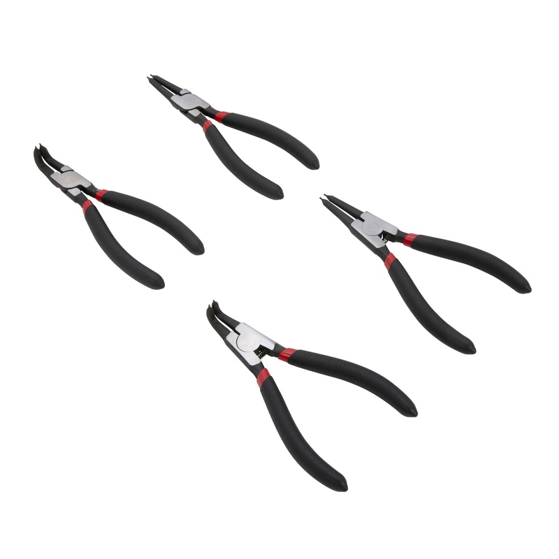 Access both internally and externally placed circlips and retaining rings with equal easy using the STEELMAN 60957 4-Piece 5-Inch Long Straight and 90-Degree Offset Internal and External Snap-Ring Pliers Set. These versatile and compact, 5-inch long tools