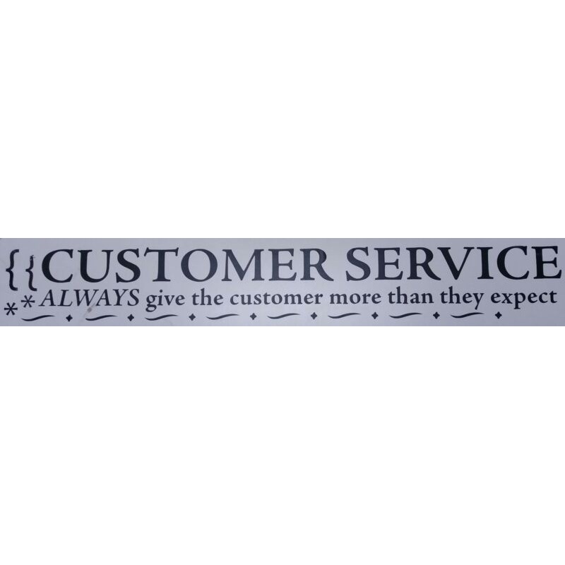 ADVANTUS “CUSTOMER SERVICE” MOTIVATIONAL WALL MESSAGEPRINTABLE VERSIONREMOVABLE AND REPOSITIONABLE.SIMPLY RUB AND PEEL.PLASTIC BURNISHING TOOL INCLUDED.SAFE FOR WOOD, WALLS, WINDOWS AND WHITEBOARDS.CREATE A POSITIVE AND ENERGETIC ATMOSPHERE AT THE OFFICE OR IN THE CLASSROOM. THESE MOTIVATIONAL WALL MESSAGES UTILIZE A REMOVABLE, REPOSITIONABLE VINYL DESIGN–MAKING THEM IDEAL FOR OFFICES, TRAINING ROOMS AND LOBBIES. EASY APPLICATION REQUIRES YOU TO SIMPLY RUB, PEEL AND PRESS TO INSTALL. SAFE TO APPLY TO A VARIETY OF SURFACES, INCLUDING WOOD, WALLS, WINDOWS AND WHITEBOARDS. FEATURES THE INSPIRATIONAL MESSAGE:“CUSTOMER SERVICE – ALWAYS GIVE THE CUSTOMER MORE THAN THEY EXPECT.”WIDTH42 INHEIGHT6 IN