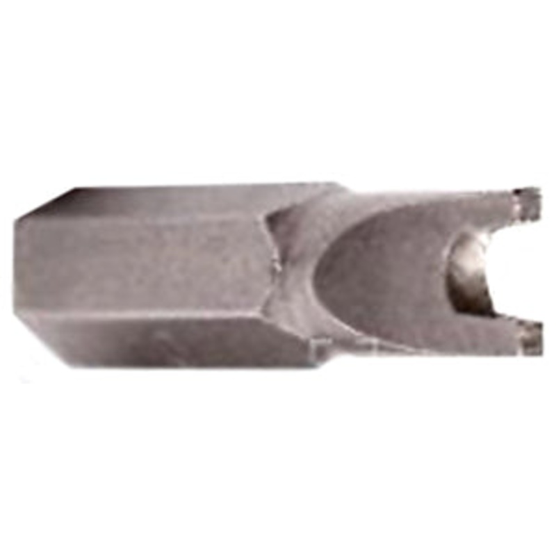 SPANNER SECURITY. Spanner insert bits that fit snake eye screws. Made of chrome molybdenum tool steel. 1/4" hex shank. Length 1". Carded.