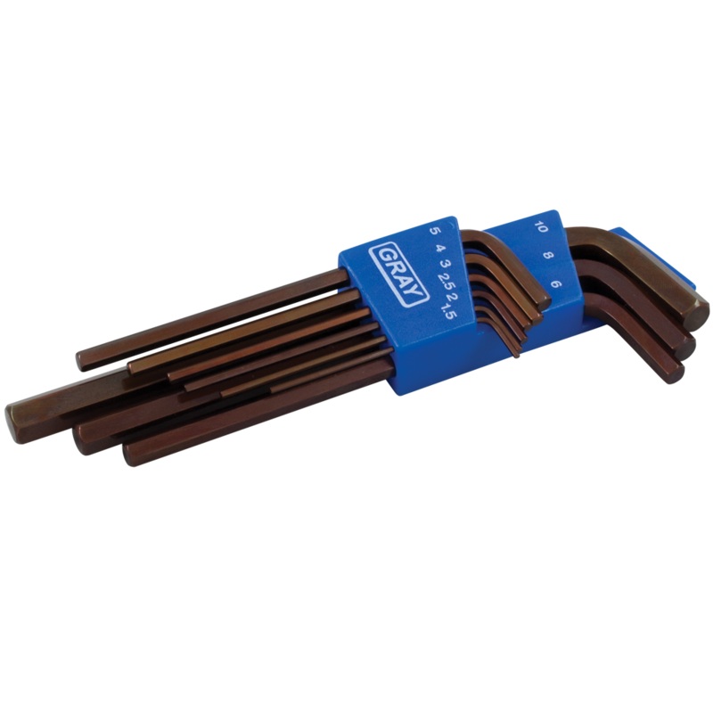 Contains Sizes: 1.5, 2, 2.5, 3, 4, 5, 6 8, 10mm.Made of premium S2 tool steel for superior durability and corrosion resistance.Delivers up to 33% more torque than ordinary hex keys.Keys 1/8" & 3mm and larger have size permanently laser marked on the key.