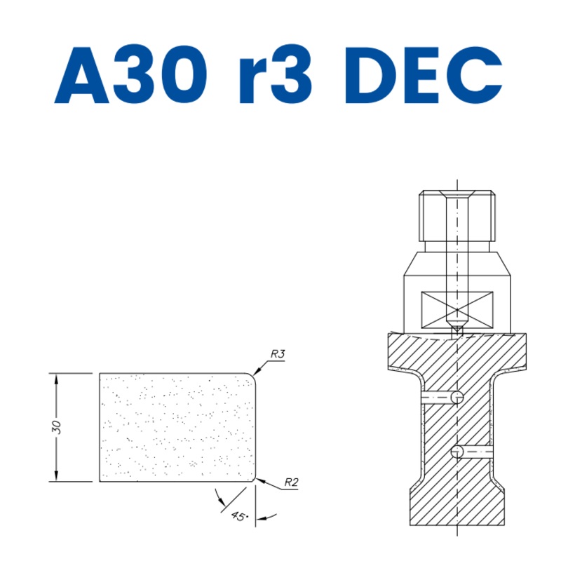 The A30 R3 DEC (30mm R3 Eased Edge DEC) is designed for high-speed performance in various applications, offering a versatile solution for multiple industries. It comes in three distinct kits: EHS Kit, Standard Kit, and Electroplated Kit, each tailored to different material needs. These kits ensure efficient processing, smooth finishes, and superior results.