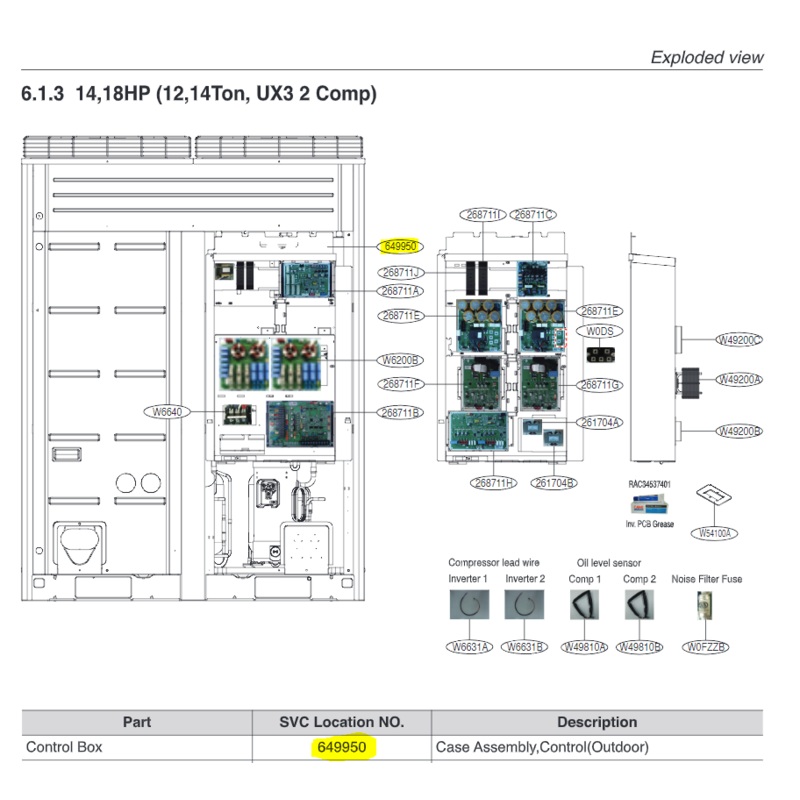 Part # ABQ73023735Control Case Assembly - Location # 649950Control Board Kit For Model ARUB144BTE4MULTI V III Heat Pump 3 phase 208/230V