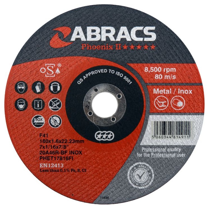 Abracs Phoenix II Extra Thin Cutting Discs are a superior quality European manufactured range of extra thin cutting discs produced to O.S.A. Safety standards. Extremely fast and precise cutting with minimal effort required. Phoenix discs have been develope