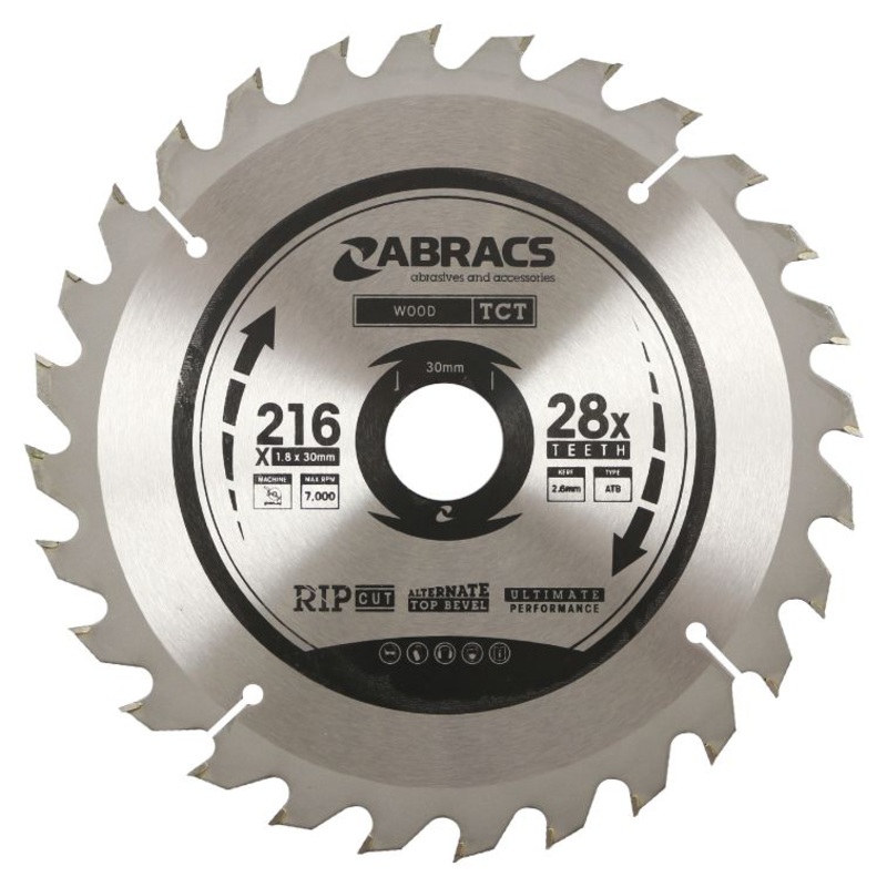 Abracs TCT are manufactured with Tungsten Carbide Tipped Teeth for wear resistance and extreme lifetime. The Fully hardened plate offers precision accuracy while the expansion slots eliminate the risk of warping. Available in a broad range of sizes, cut types and teeth configurations. For use of most wood material applications. Blades with fewer teeth cut faster but those with more teeth create a finer finish