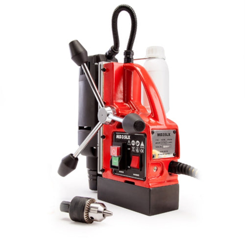 TheMD35LXis a single speed magnetic drill. The 1050w motor produces a speed of 450rpm. Drilling is aided by an integrated coolant supply.