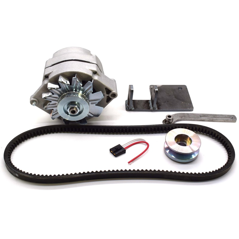 JeepsterMan has done it again with a new conversion kit. Add convenience and power with this new 12 Volt GM one wire conversion, 63 Amps. This kit is internally regulated and easy installation. Does away with your voltage regulator. Allows for one wire hookup between battery and alternator. New reproduction alternator and no core charge. More amps than your original alternator. Includes alternator, 2 brackets, 5/8″ belt, 5/8″ Pulley Conversion, GM one wire plug, and instructions. 12 month warranty. We also offer a 6 Volt alternator conversion. Fits: