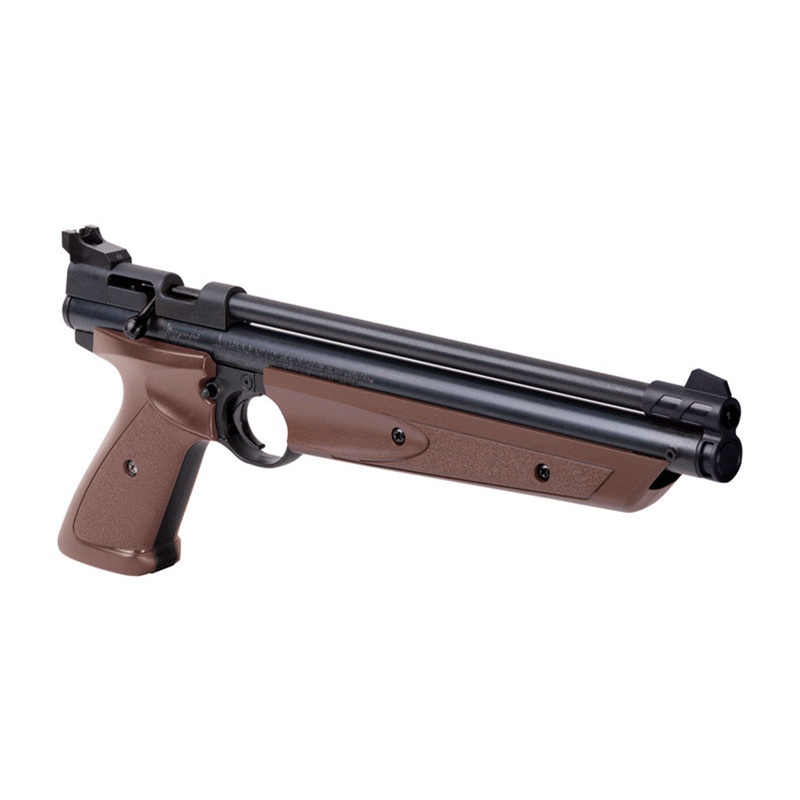 Engineered for precision and versatility, the American Classic Air-Powered Pellet Pistol 0.177 Caliber P1377 combines a sleek design with powerful performance. Featuring a rifled steel barrel, adjustable rear sights, and variable pump power for up to 600 fps velocity, this single-action pneumatic pistol ensures accuracy and control.Pellet size: 0.177 caliberVelocity of 600 feet per secondFeatures open sights for improved aimingSingle-shot air pistol with a rifled steel barrelLightweight design, weighing 1.875 poundsIncludes a fixed barrel and crossbolt safetyCompact 13.6-inch length for easy handling