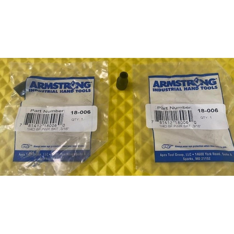 Armstrong 18-006 1/4″ Drive 3/16″ Impact Socket 6 Point 2pcs USA