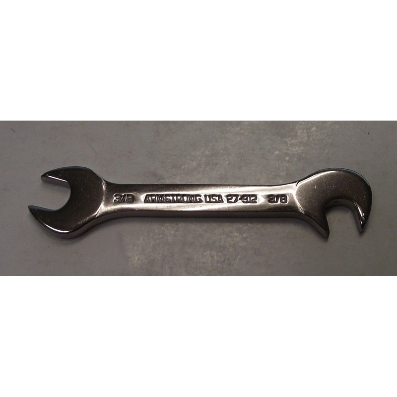 Armstrong 27-912 3/8" Open End Midget Wrench 15 & 75 Degree USAWITH ONE SIZE OPENING PER WRENCH, ONE HEAD IS ANGLED 15 DEG AND THE OTHER IS ANGLED 75 DEG PROVIDING 4 DIFFERENT TURNING ANGLES FOR GREATER ACCESS IN TIGHT WORK AREASOPEN ENDS HAVE A RADIUS DES
