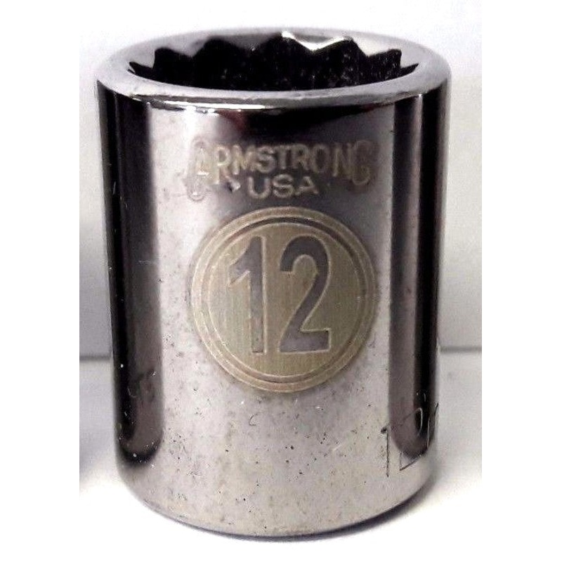 Armstrong 37-112 1/4" Drive 12mm Socket 12pt. USAMade in the USA - Quality and AvailabilityRadius Corner Design Engages the Flats of the Fastener, Not the Corners, Providing Up to 15% -20% More Torque While Reducing Fastener Rounding, Enhancing the Turning