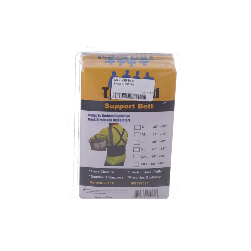 Tuff Gard Premium Back Support 98-911B (MEDIUM) Flexible with inner support Removable and adjustable shoulder straps 2 Stage Closure System Belt is secured by hook & loop closure