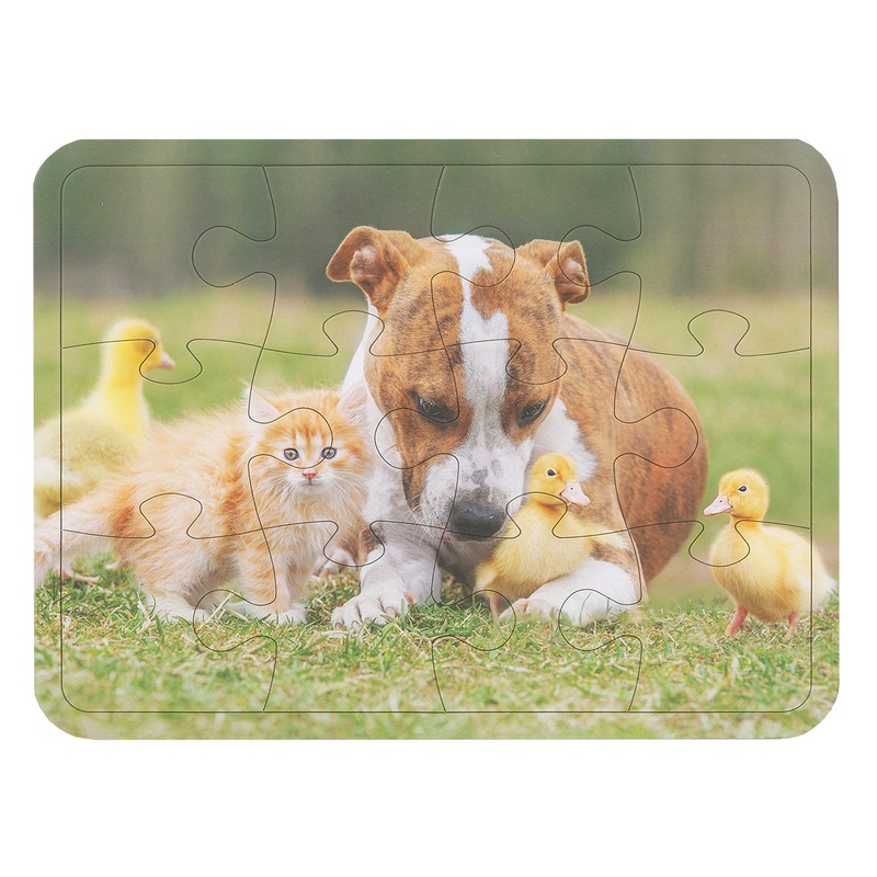 This Barnyard Pets 12-Piece Tray Puzzle CH8500 will provide fun and entertainment for your little one. It features a frame tray and an adorable puppy, kitten, and chicks.12 pieces8 x 11 inches